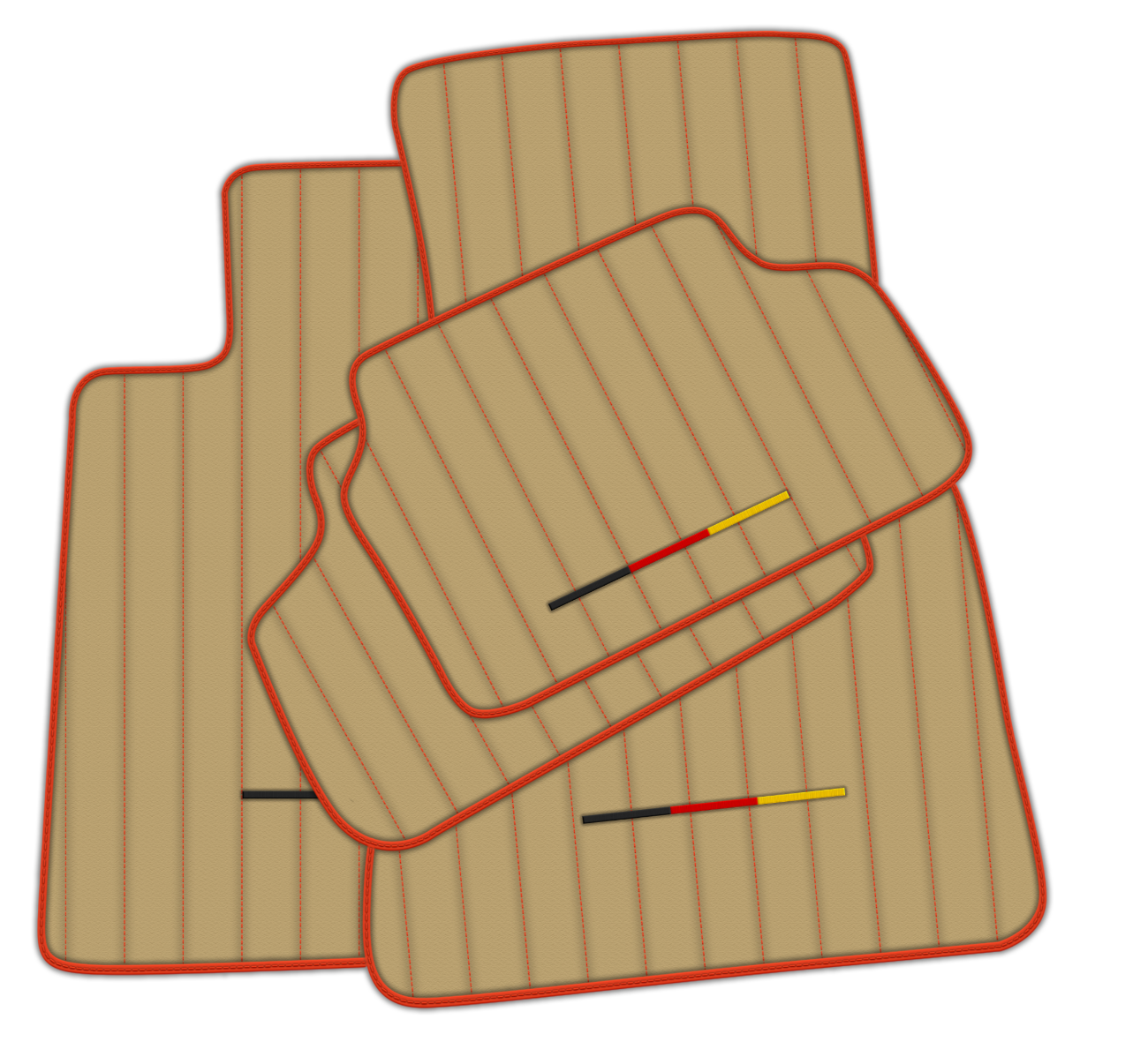 Upgrade your BMW with these luxurious Beige Leather Floor Mats. The Line Pattern adds a touch of elegance, while the red stitching and trim enhance the overall look. Crafted from high-quality leather, these mats provide style and protection for your vehicle's floors.